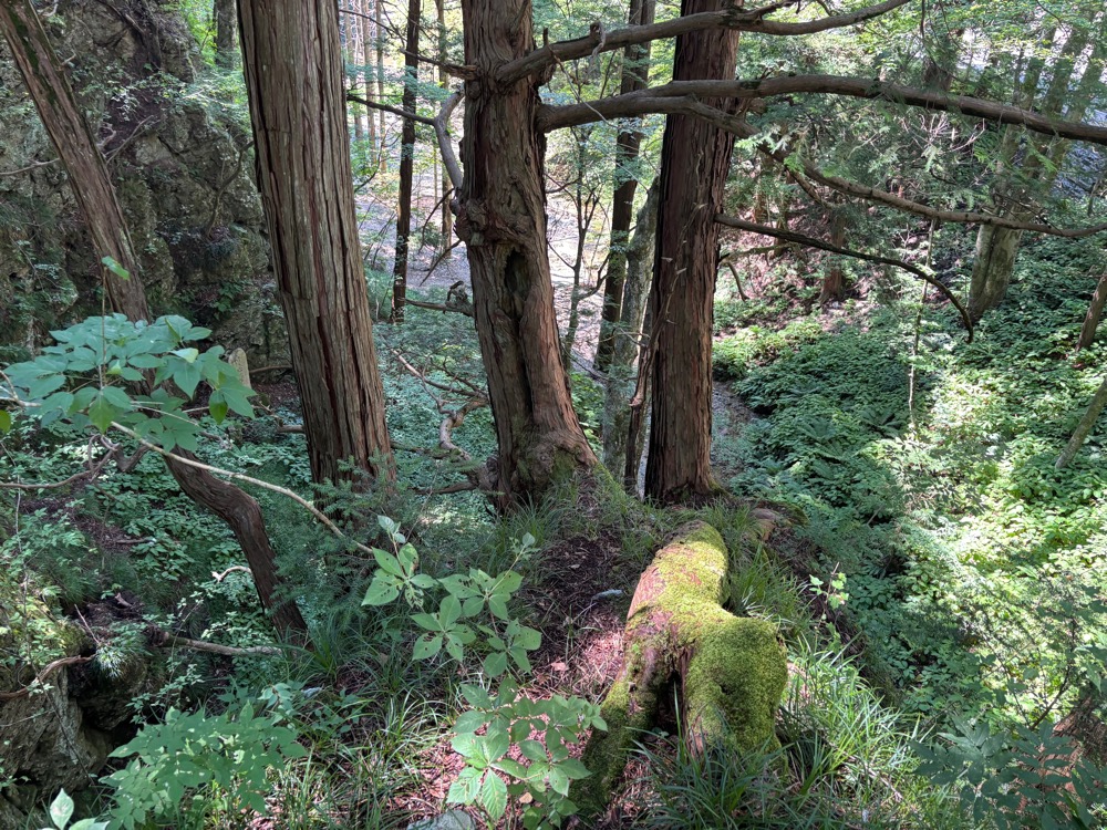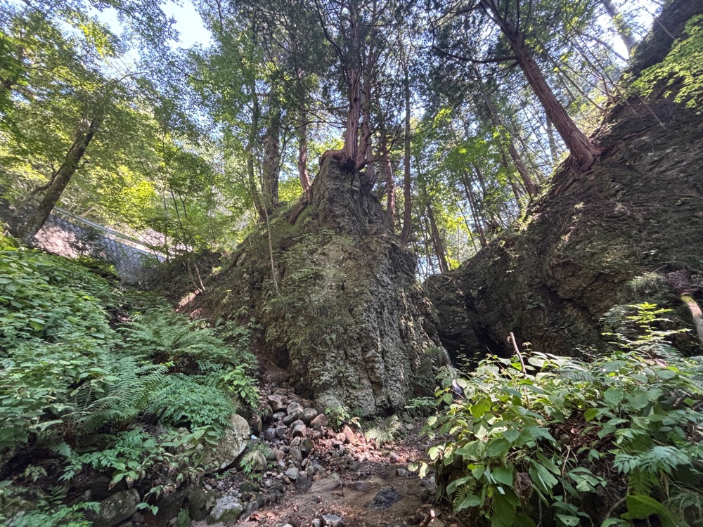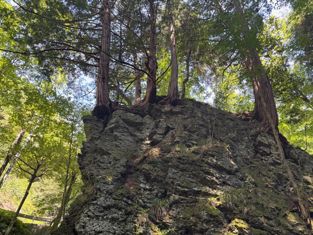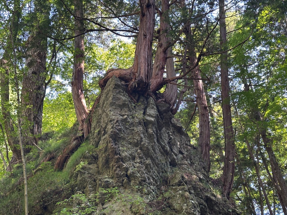 巨岩の上から杉の木が生えているのが面白くて写真に収めました。そんなところでも自生できるのかとちょっと感心しつつ、木が岩に向かって根を伸ばしてまで成長しようとする姿に不気味さも感じました。