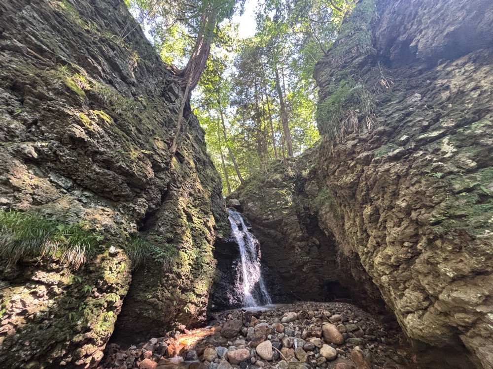 どこかで見た景色だなと家に帰ってふと思い返すと、群馬県の「観音山不動滝」に似た雰囲気を持っているなと!さらにインターネットで情報を漁ってみると、どうも冬は氷瀑になるとのこと。冬場にここまで来るのはハードルが高いですが機会があれば来てみたいと思います。