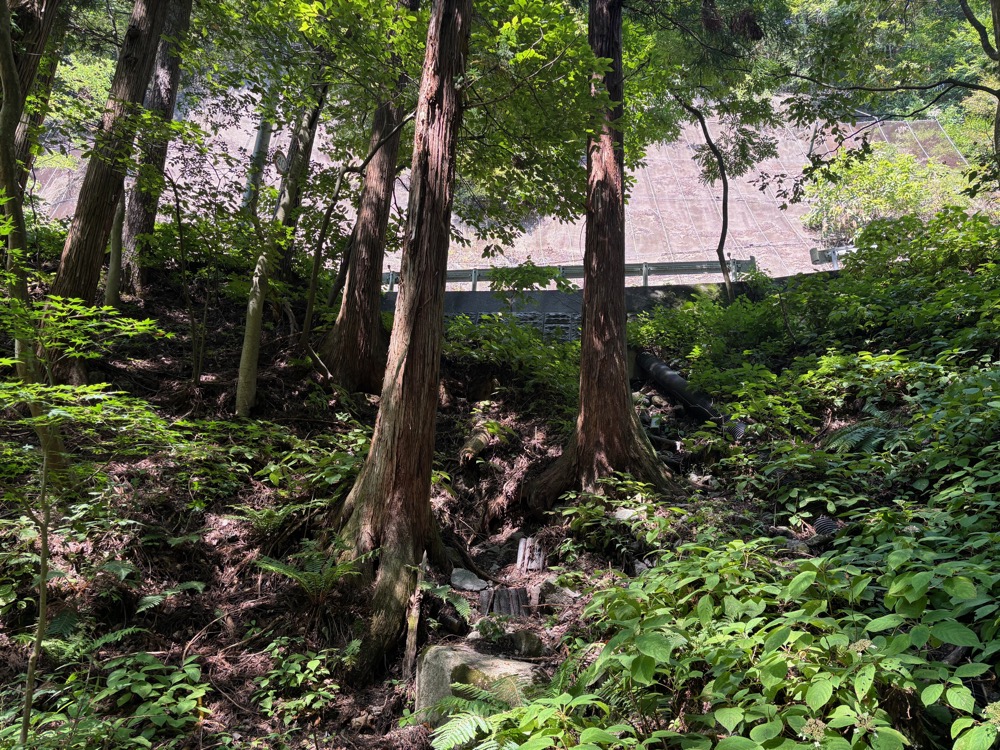 車一台分ほどのスペースはありますが、ちょうど沢にかかっている場所なので、上から石とか落ちてこないか少し心配でした。(こんな場所に車を停めていく滝なので、当然ながらトイレはないです)