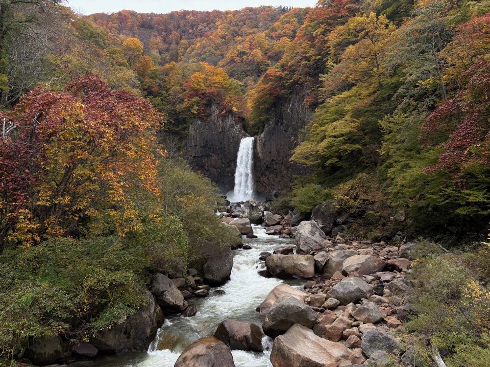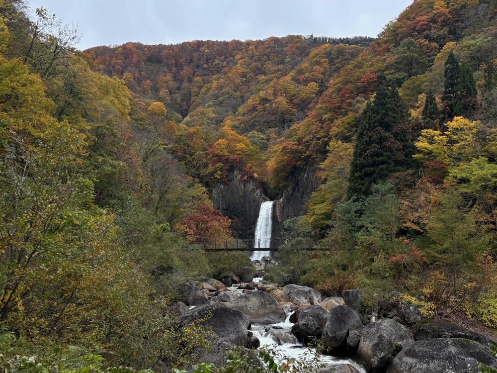 この時は紅葉に抱かれた苗名滝の姿に感動しましたが、キラキラした新緑の中にある姿や生き物を拒絶する深雪に埋もれた姿もきっと素敵なはずで、絶対に夏や冬にも来訪しようと決意しました。