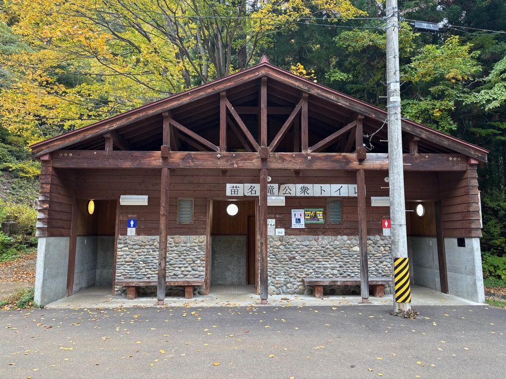 観光名所なだけあって苗名滝の駐車場とトイレはしっかりと整っています。こういったメジャーな滝はインフラを心配しなくていいのが精神的に楽です。