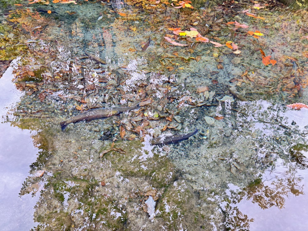 苗名滝の駐車場にある茶屋で一際目立つ「苗名滝苑」。軒先には湧水を使った岩魚の生け簀があるのですが、この水がよく透き通っていて綺麗で、なんだか引き寄せられそうになり、とても印象に残っています。