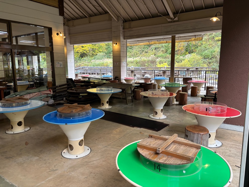 苗名滝の店内ではそうめん流しと岩魚を食すことができそうですが、今回は朝早くに来たため残念ながら準備中。