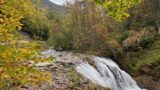 この時は紅葉が始まるぐらいの時期で、山の木々は赤に黄色に色づき始めていて、川の深い緑とのコントラストが素敵でした。こういう風景を見ると神奈川から何時間もかけて来た意味があるなといつも思います。